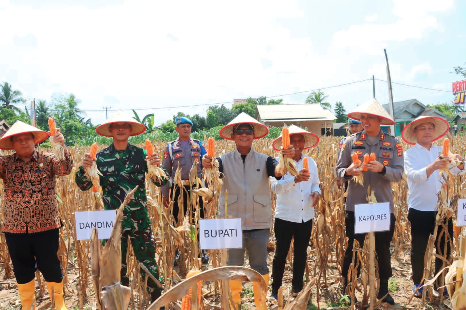 Di momen tersebut, Bupati, Ardito Wijaya bersama jajaran Forkompinda Lampung Tengah secara simbolis melaksanakan pemetikan buah jagung sebagai pertanda dimulainya panen raya di Terbanggi Besar.