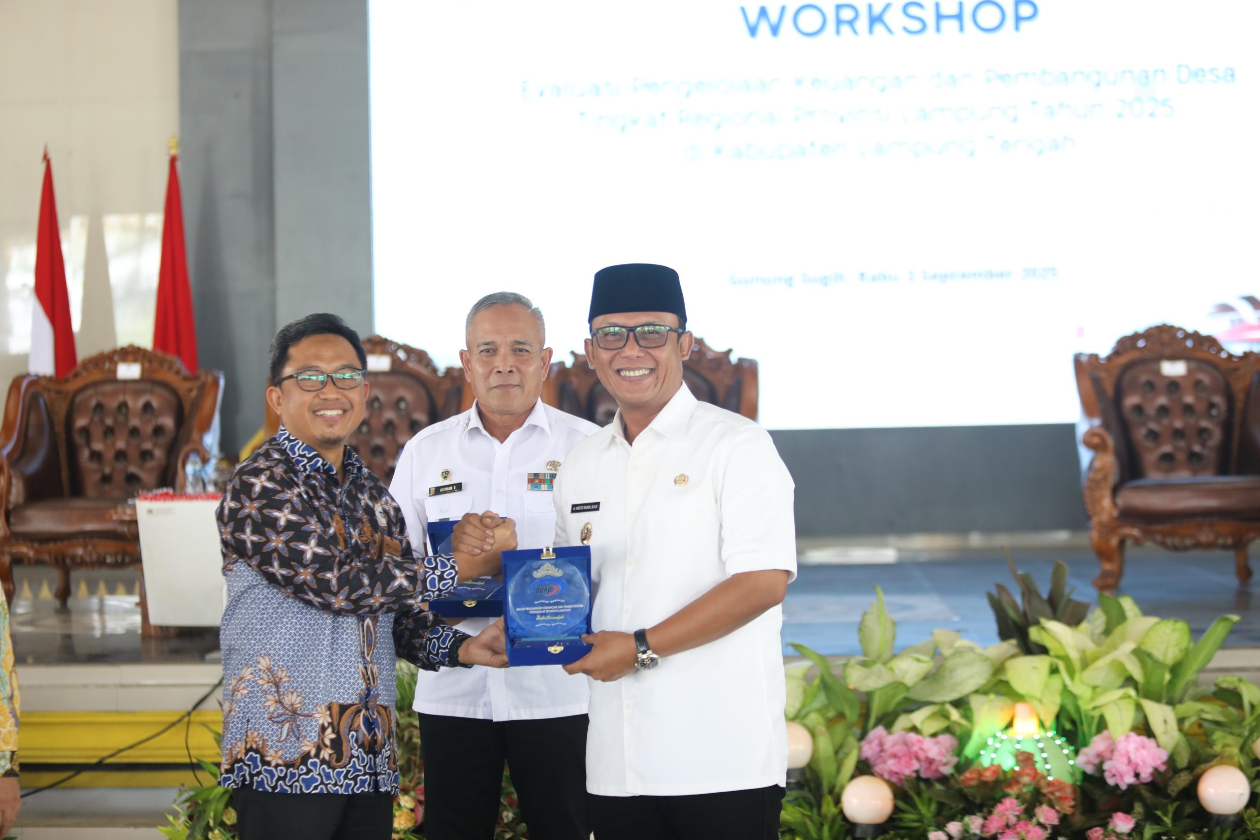 Lampung Tengah: Bupati Lampung Tengah, Ardito Wijaya, membuka secara resmi Workshop Evaluasi Pengelolaan Keuangan dan Pembangunan Desa Tingkat Regional Tahun 2025 yang diselenggarakan oleh Badan Pengawasan Keuangan dan Pembangunan (BPKP) Provinsi Lampung. Acara tersebut berlangsung di Gedung Sesat Agung, Nuwo Balak, pada Rabu (3/9/2025).
