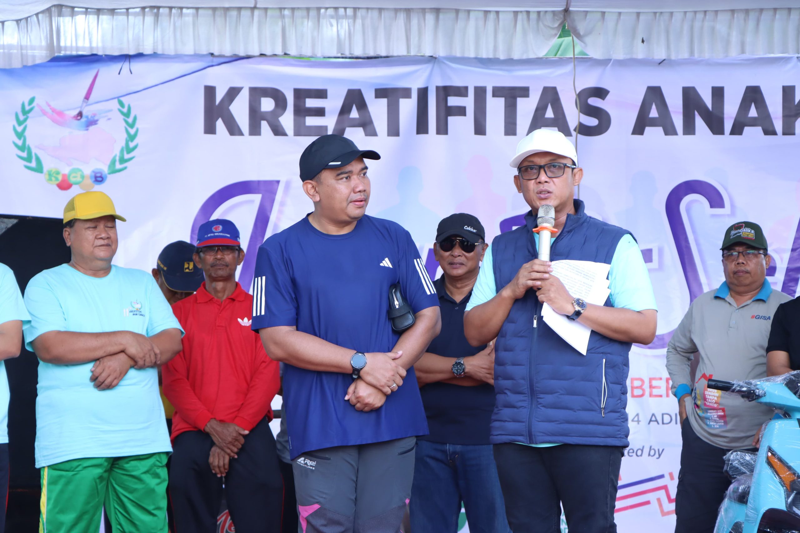 Lampung Tengah: Bupati Lampung Tengah, Ardito Wijaya melepas peserta jalan sehat dalam rangka Hari Ulang Tahun (HUT) ke-11 Kreatifitas Anak Bangsa Lampung, yang dipusatkan di RT 14, Adiluwih, Kampung Adi Jaya, Kecamatan Terbanggi Besar, Minggu (28/9/2025).