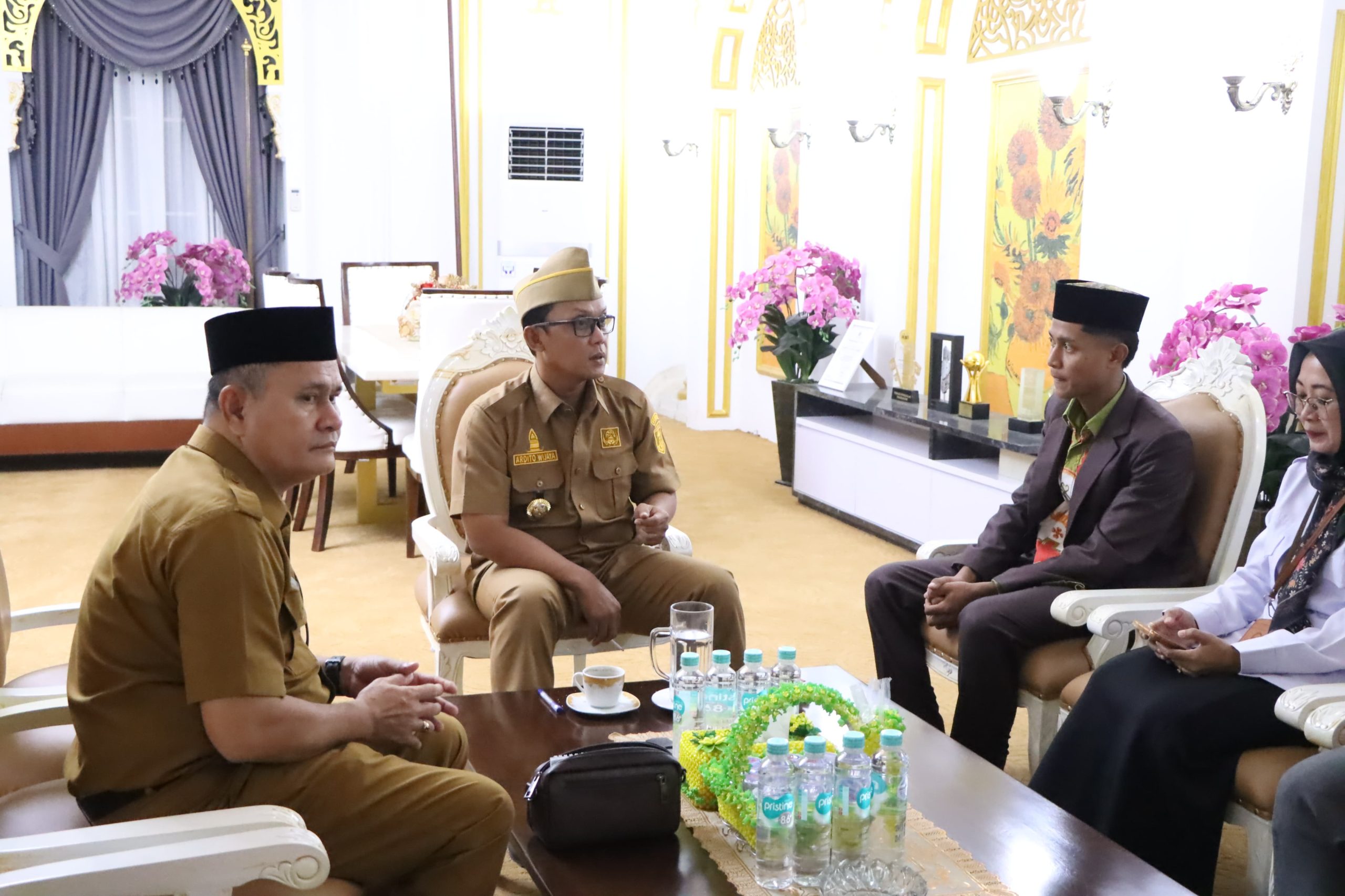 Lampung Tengah: Bupati Lampung Tengah, Ardito Wijaya, menerima audiensi peserta Seleksi Tilawatil Qur’an (STQ) yang akan mewakili Kabupaten Lampung Tengah pada ajang STQ tingkat nasional tahun 2025 di Kendari, Sulawesi Tenggara. Pertemuan di dampingi Kepala Kantor Kemenag Lampung Tengah, Maryan Hasan dan Kepala Bagian Kesra Setdakab Lampung Tengah, Indra Gandi, bertempat di ruang kerja Bupati Lampung Tengah, Senin (6/10/2025).