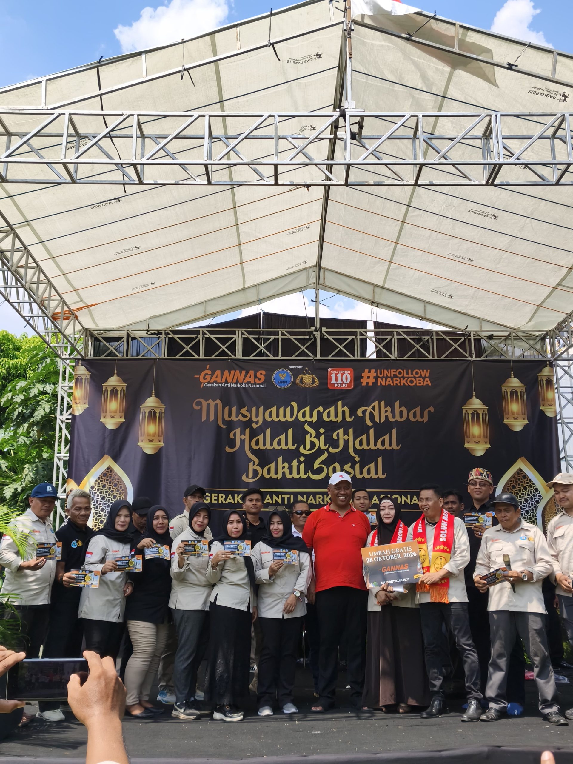 Lampung Tengah: Plt. Bupati Lampung Tengah, I Komang Koheri, S.E., M.Sos bersama Plt TP PKK Lampung Tengah Ni Ketut Dewi Nadi, S.T.,M.Sos menghadiri kegiatan Musyawarah Akbar dan Halal Bihalal yang diselenggarakan oleh Gerakan Anti Narkoba Nasional di kawasan Setu Parigi, Pondok Aren, Kota Tangerang Selatan Sabtu (11/4/2026).