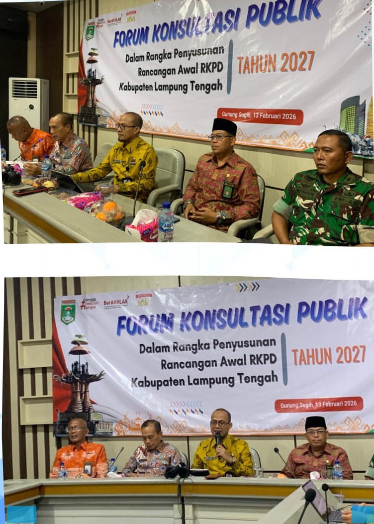 Lampung Tengah: Plt kepala Bappeda Lampung Tengah Ir. Rony Witono hadiri kegiatan forum konsultasi publik rancangan awal RKPD tahun 2027 di lingkup Pemerintahan Kabupaten Lampung Tengah, Jumat (13/02)